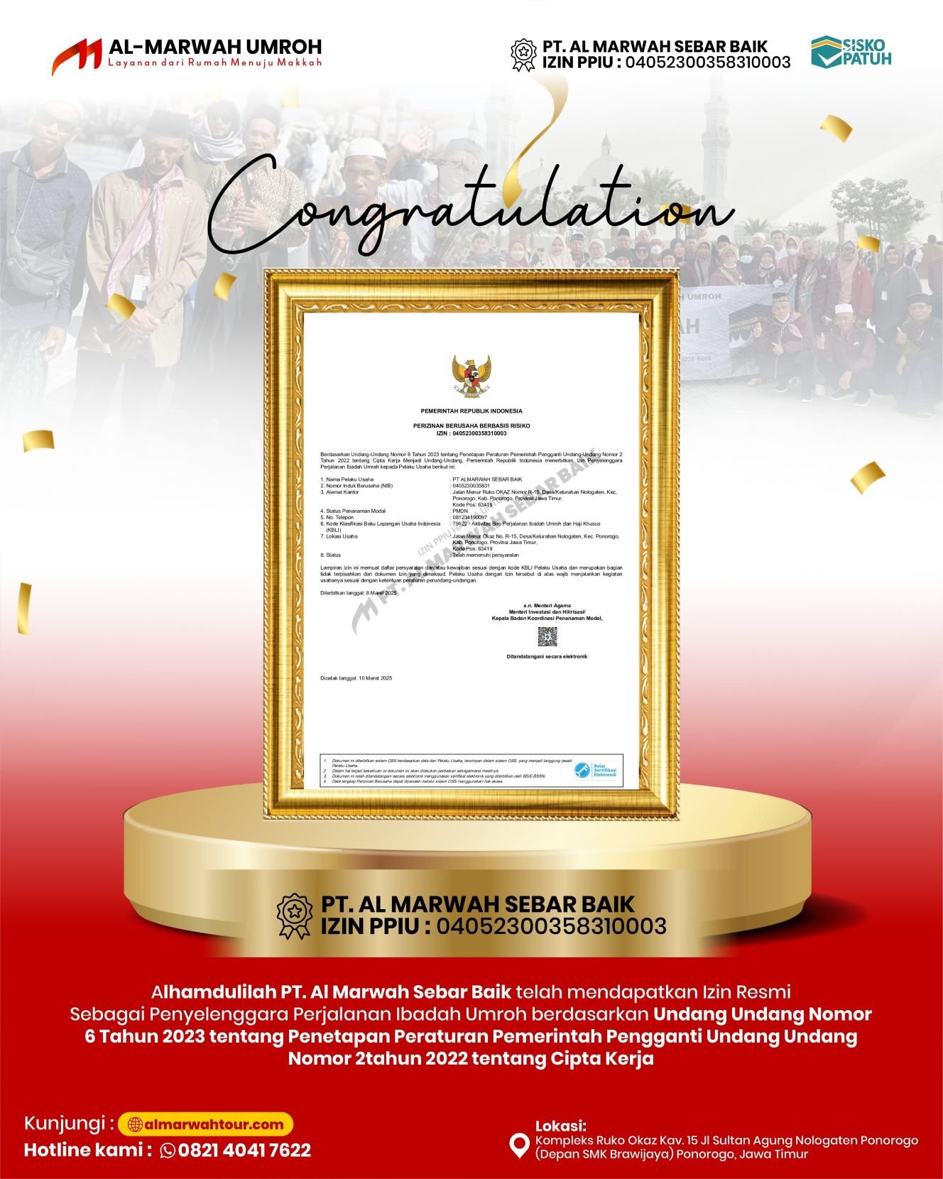 Berizin resmi sebagai Penyelenggara Perjalanan Ibadah Umrah (PPIU) dari Kementerian Agama RI.